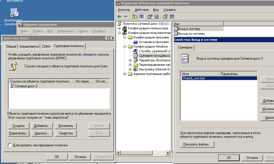 Как вы видите я многое привязал к ПК, а не к учетным записям пользователей и это очень важно тк все довольно стандартизировано и при этом не будет постоянных изменений конфигурации и ПО. В группу пользователей я вынес только то, что должно меняться при их входе это и расшаренные директории, и закладки и некоторые ограничения характерные для определенной группы.
