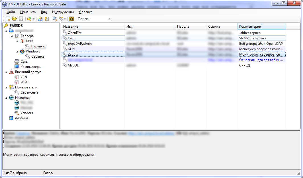 Здесь я указал основные сетевые серверы и группы, а так же указал их, имя, алиасы, IP, порт свича и номер по KVM.