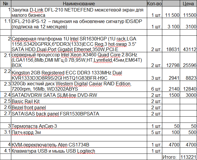 1. закупка оборудования на сумму ~100 тыс. руб (больше они не могли обеспечить по результатам переговоров).