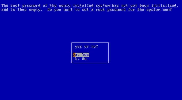 26) Теперь нам предлается установить пароль для администратора (пользователя root) операционной системы. Выбираем "Yes" и переходим к следующему экрану.