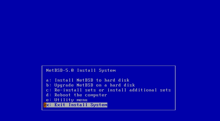 30) В конце-концов мы опять возвращаемся к главному меню программы sysinst, но уже без коментариев. Если её предполагается запускать в дальнейшем при работе с реаниматором, то можно выбрать последний пункт для завершения работы sysinst (при этом запустится командный интерпретатор) и скопировать её на наш диск (находится она прямо в корне виртуального CD). А для проверки работоспособности свежеустановленной ОС выбираем пункт "Reboot the computer" и перезагружаем виртуальную машину. При этом, для верности, лучше отключить виртуальный CD-ROM или "извлечь" из него установочный iso-образ. Сделать это можно в строке состояния (внизу) справа щелчком по иконке оптического привода или же через вернее меню виртуальной машины.